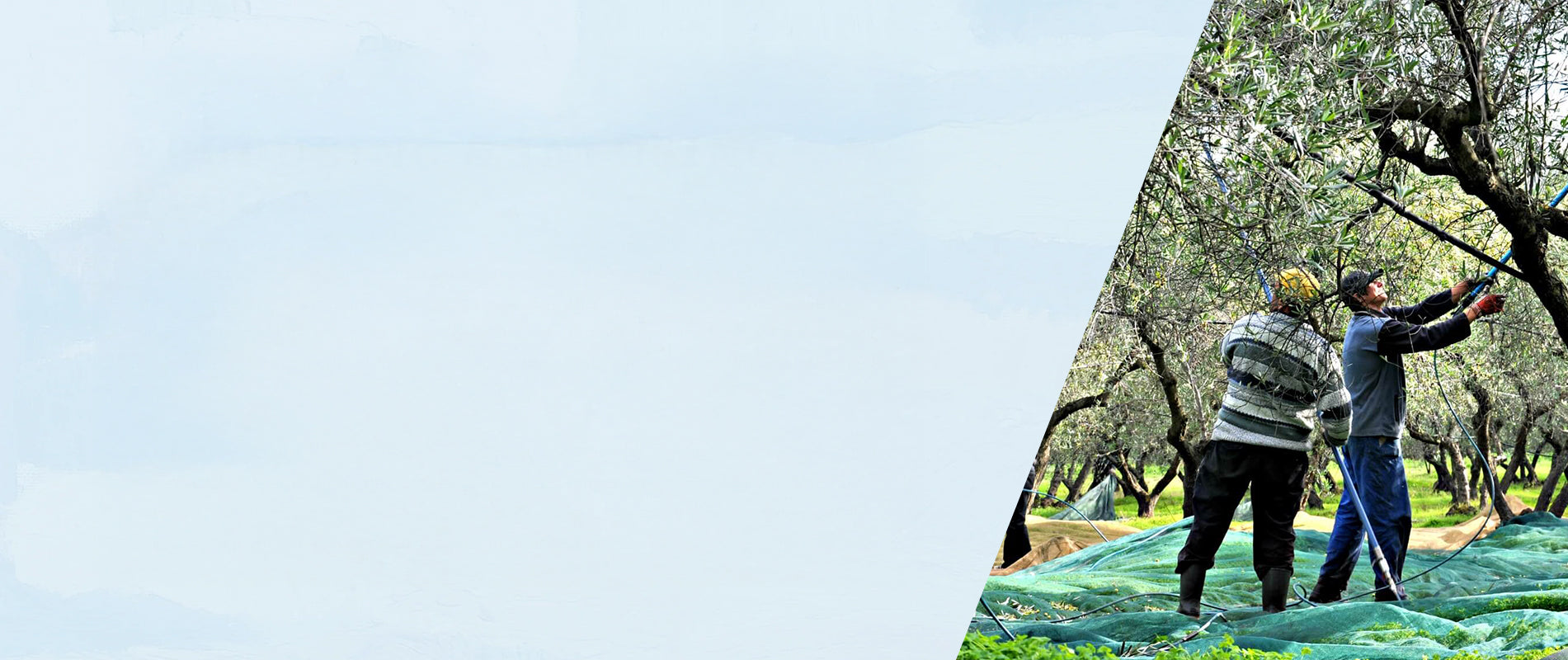 Teams of six expert harvesters work hard, helping the olives to fall from the trees into the nets below.